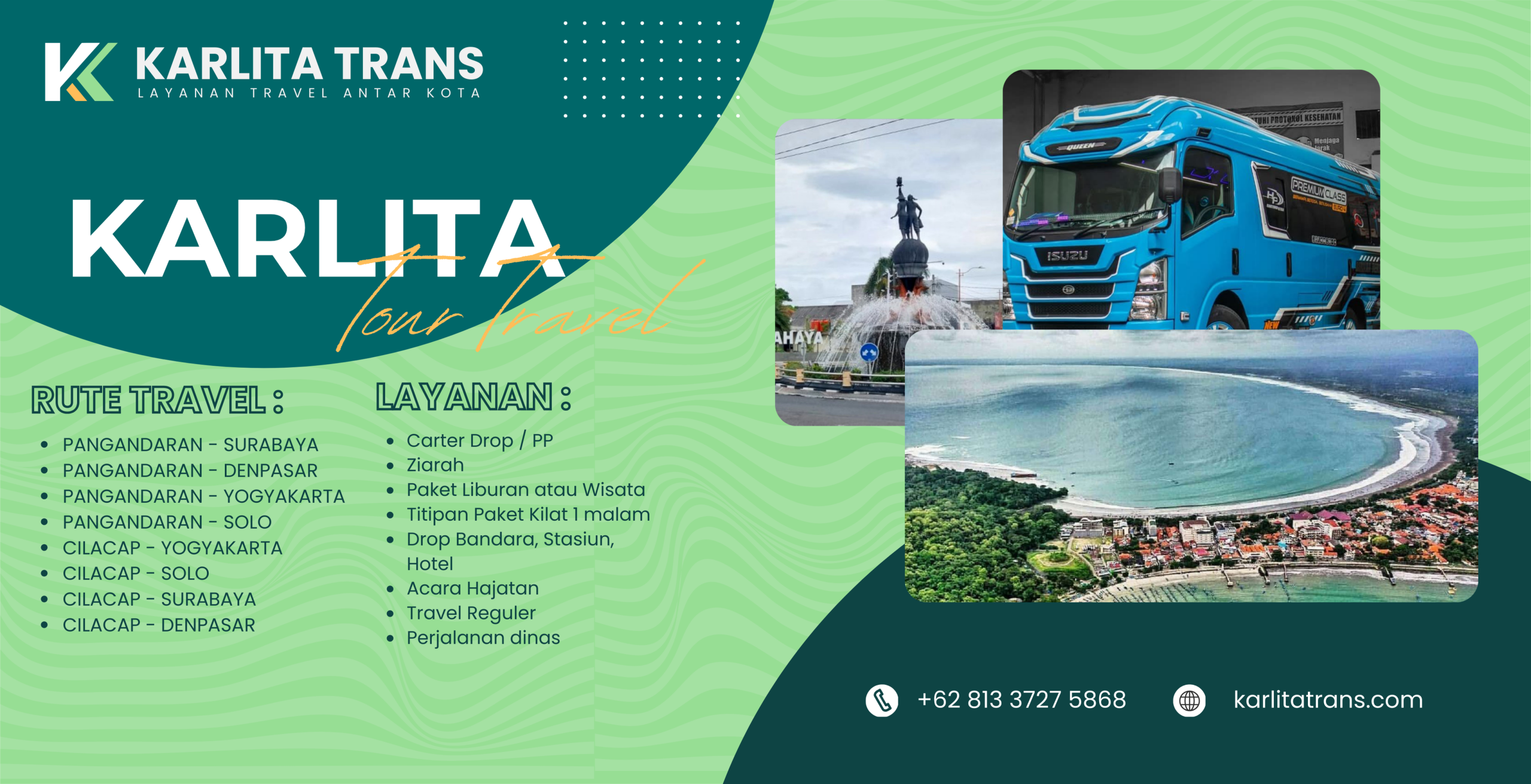 Karlita Trans merupakan perusahaan yang bergerak di bidang jasa travel antar kota hingga antar provinsi dengan rute utama Pangandaran – Surabaya, Pangandaran – Denpasar, Cilacap – Surabaya, dan Cilacap – Denpasar. Setiap perjalanan akan diantar langsung oleh driver berpengalaman yang siap memberikan pelayanan ramah dan profesional. Kami menyediakan armada pilihan yang bisa disesuaikan dengan kebutuhan Anda, mulai dari Hiace, Elf Long, Avanza, hingga Sigra.